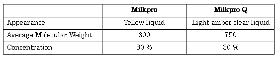 same as that of other polypeptides. Effect 1) good emollient 2) good affinity to skin 3) stable in the hard water due to its chelate ability 4) to stabilize colloid and emulsion 5) good adsorption to hair In order to enhance adsorptive power, we developed MILKPRO Q, a quaternary ammonium derivative of MILKPRO. |